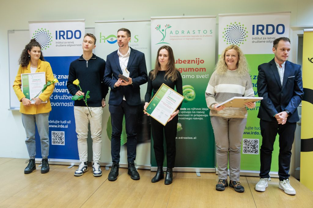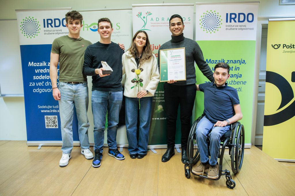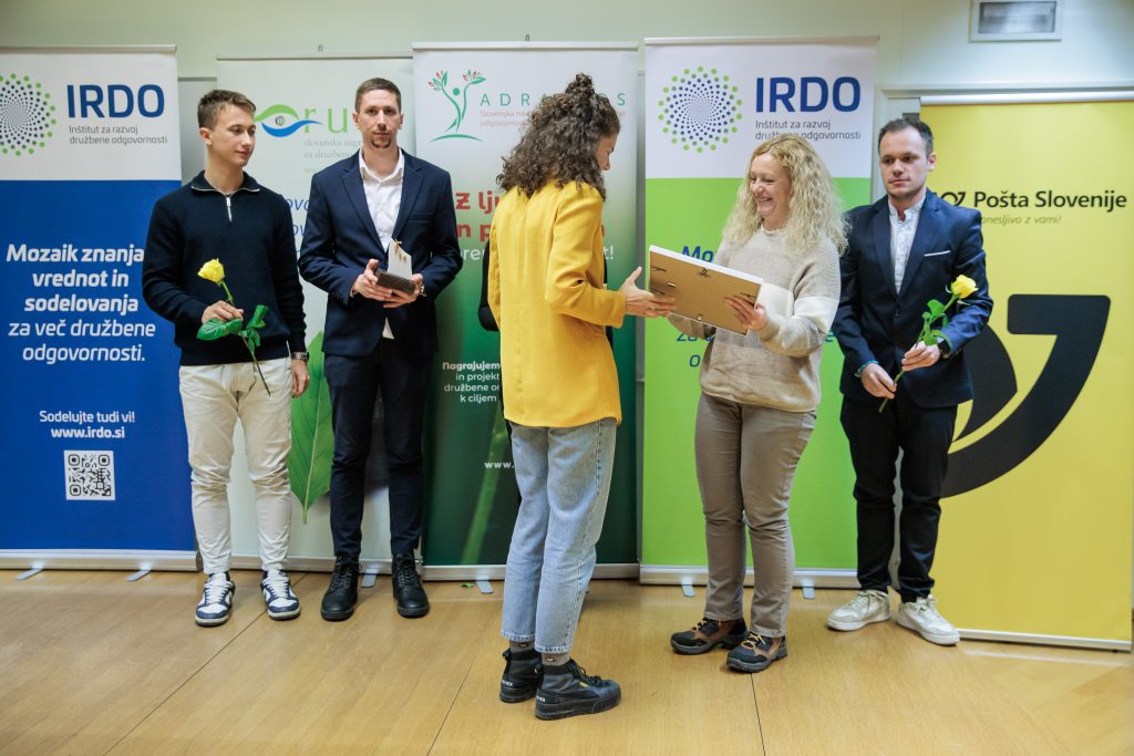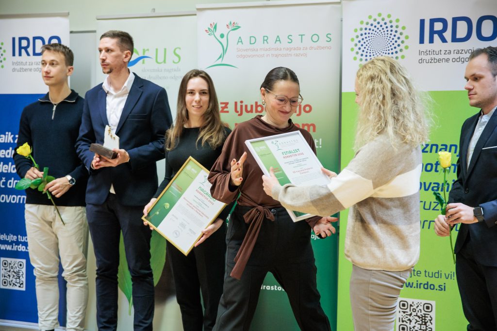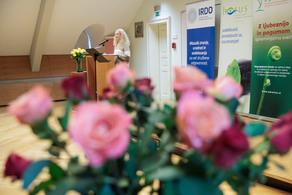 (Ljubljana, 16. december 2025) Danes je IRDO – Inštitut za razvoj družbene odgovornosti v prostorih Pošta Slovenije d.o.o. v Ljubljani 14 izjemnim organizacijam in posameznikom podelil nagrade in priznanja za družbeno odgovornost in trajnostni razvoj HORUS  2025. Prav tako pa 8 izjemnim projektom mladih in za mlade v okviru ADRASTOS 2025 – Slovenske mladinske nagrade za družbeno odgovornost in trajnostni razvoj. Nagrada ADRASTOS je bila letos podeljena tretjič, nagrada HORUS pa sedemnajstič zapored. Častna pokroviteljica podelitve obeh nagrad je mag. Tina Kosi, direktorica Urada RS za mladino.